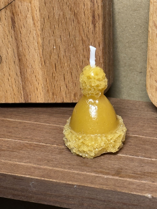 Homemade Beeswax Candle in the shape of a Christmas Hat
