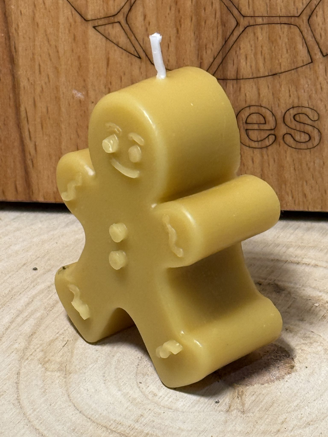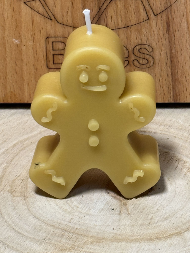 Homemade Beeswax Candle in the shape of a Gingerbread Man