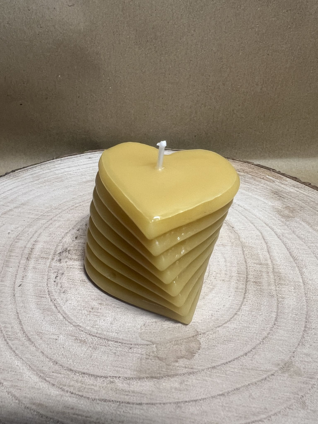 Homemade Beeswax Candle in the shape of a Rotating Heart