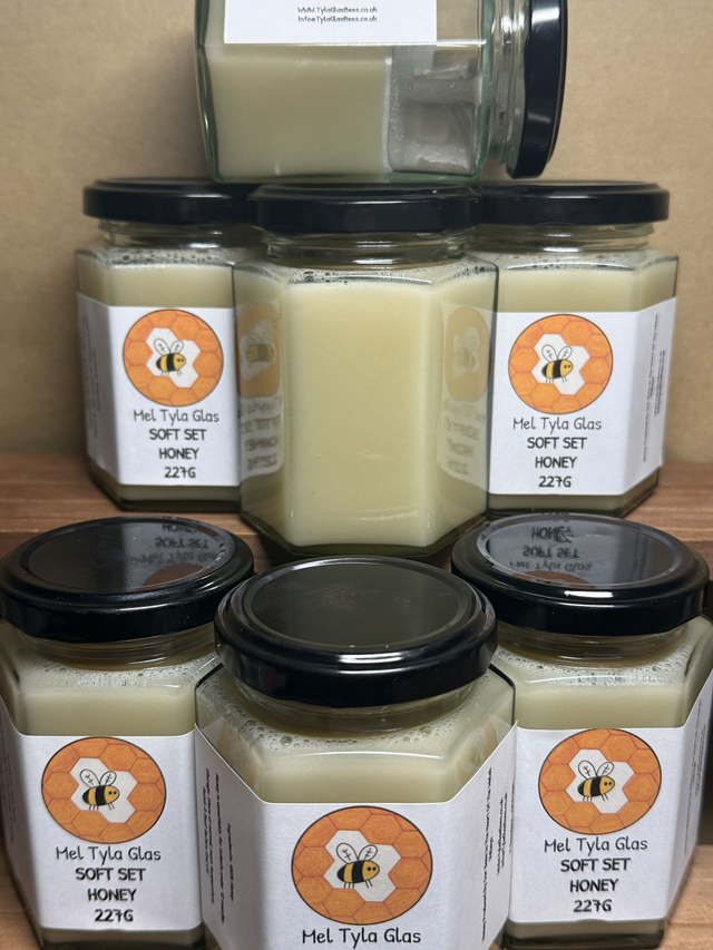 Natural Soft Set Summer Honey produced by our bees in the heart of the South Wales Valleys